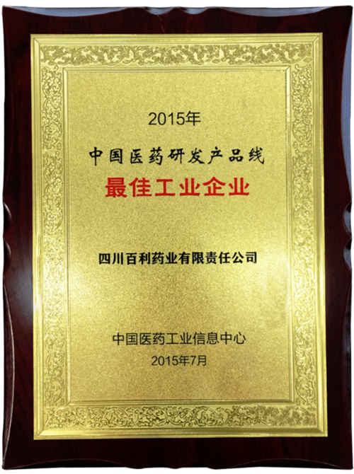 • 2015年 国家工信部中国医药工业信息中心
