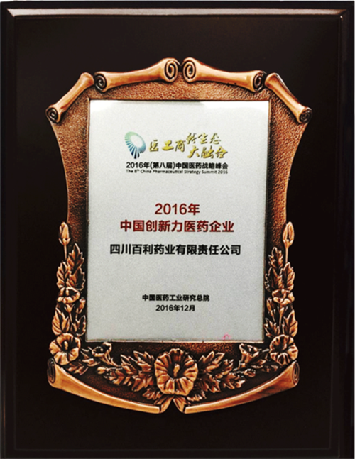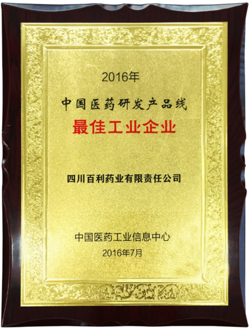 • 2016年 国家工信部中国医药工业信息中心