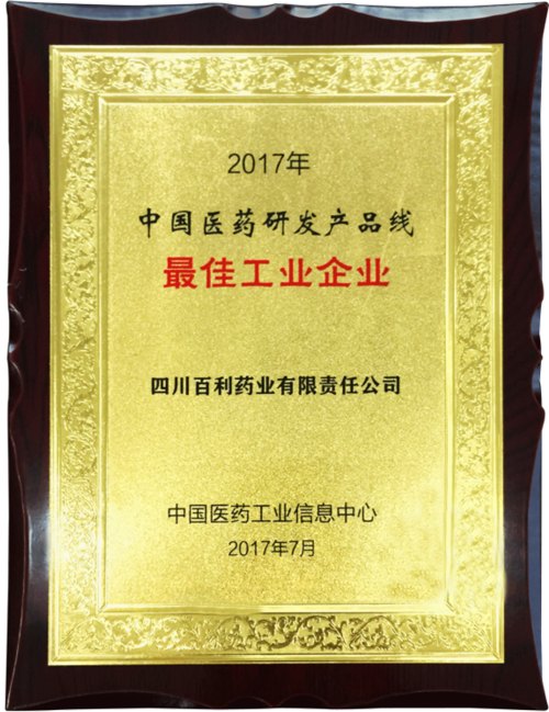• 2017年 国家工信部中国医药工业信息中心