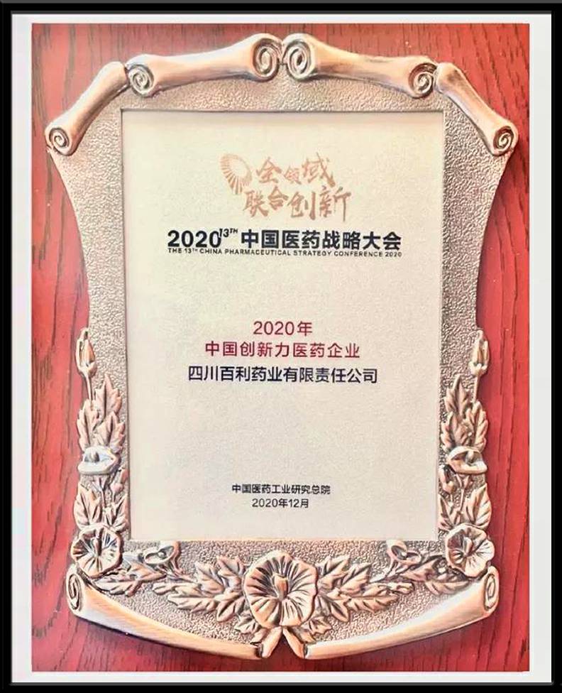 2015年-2021年公司连续七年被国家工信部中国医药工业信息中心评选为“中国医药研发产品线最佳工业企业”二十强;2015年-2020年公司连续六年被国资委中国医药工业研究总院评选为“中国创新力医药企业”二十强。