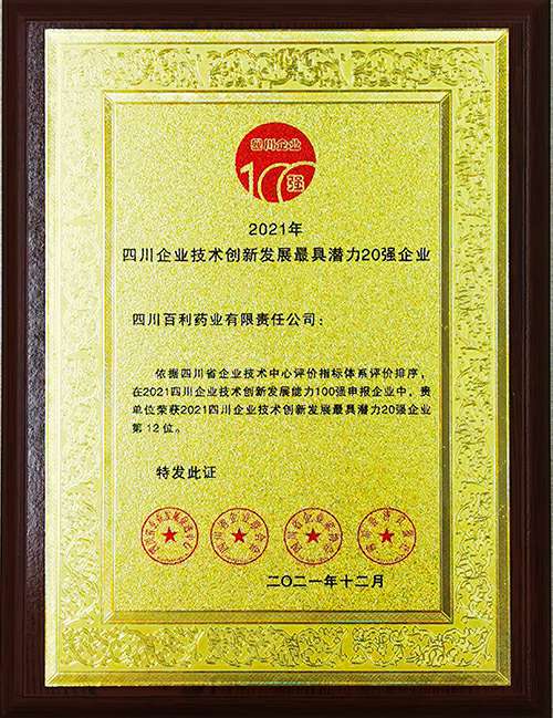 • 2021四川企业技术创新发展最具潜力20强